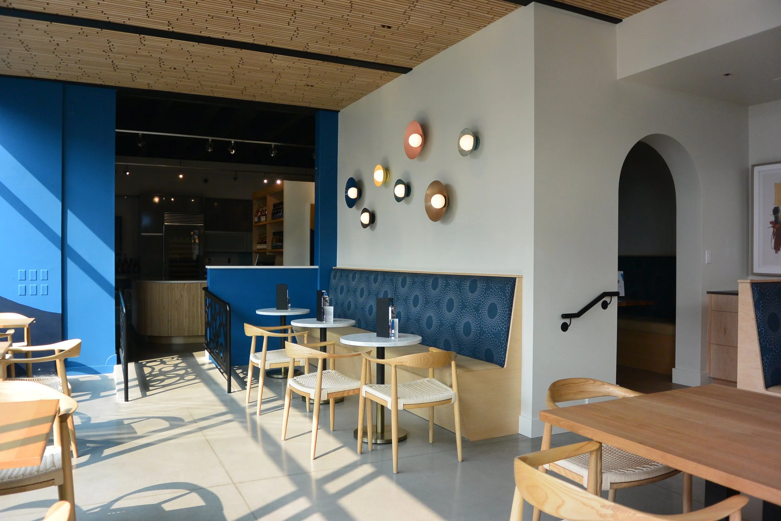 we designed a simple tasting room as an addition to ocp. the design integrates an expanded tasting program into the building’s existing footprint to carry on with ocp’s tradition of an immersive tasting experience. the material palette is a variation of the original building’s pre-cast concrete structure, but with haptic improvements; new walls are insulated board-form concrete, ceiling is hardwood-clad acoustic panels, and horizontal surfaces are mural spaces.